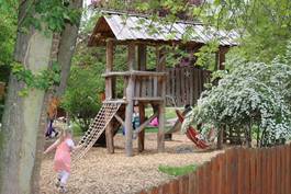Wir haben ein großzügiges Außengelände mit altem Baumbestand, einen riesigen Sandkasten, in dem wir bauen und buddeln können. Mit unserem Boot unternehmen wir abenteuerliche Reisen. Auf der Ritterburg haben wir die Möglichkeit zum Klettern und Rutschen. Bei schönem Wetter hängen unsere ErzieherInnen Hängematten auf, so dass wir darin schaukeln und entspannen können.
